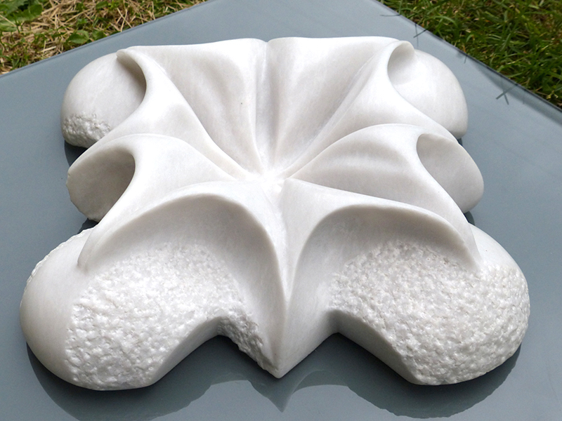 Géométrie de la forteresse visuelle que nous laissons voir à l’autre face aux plis du drapé évoquant notre vie intérieure, la souplesse de notre peau, notre simple humanité, et puis, 4 faces représentant les 4 âges de la vie mais aussi les différentes facettes de notre personnalité...