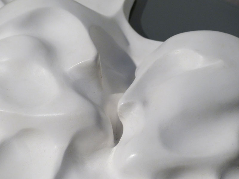 This sculpture, made of resin and porcelain powder, is fixed on a coloured glass panel. A fastening system allows it to be displayed vertically or horizontally. Dimension:
